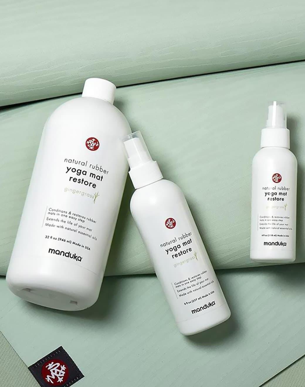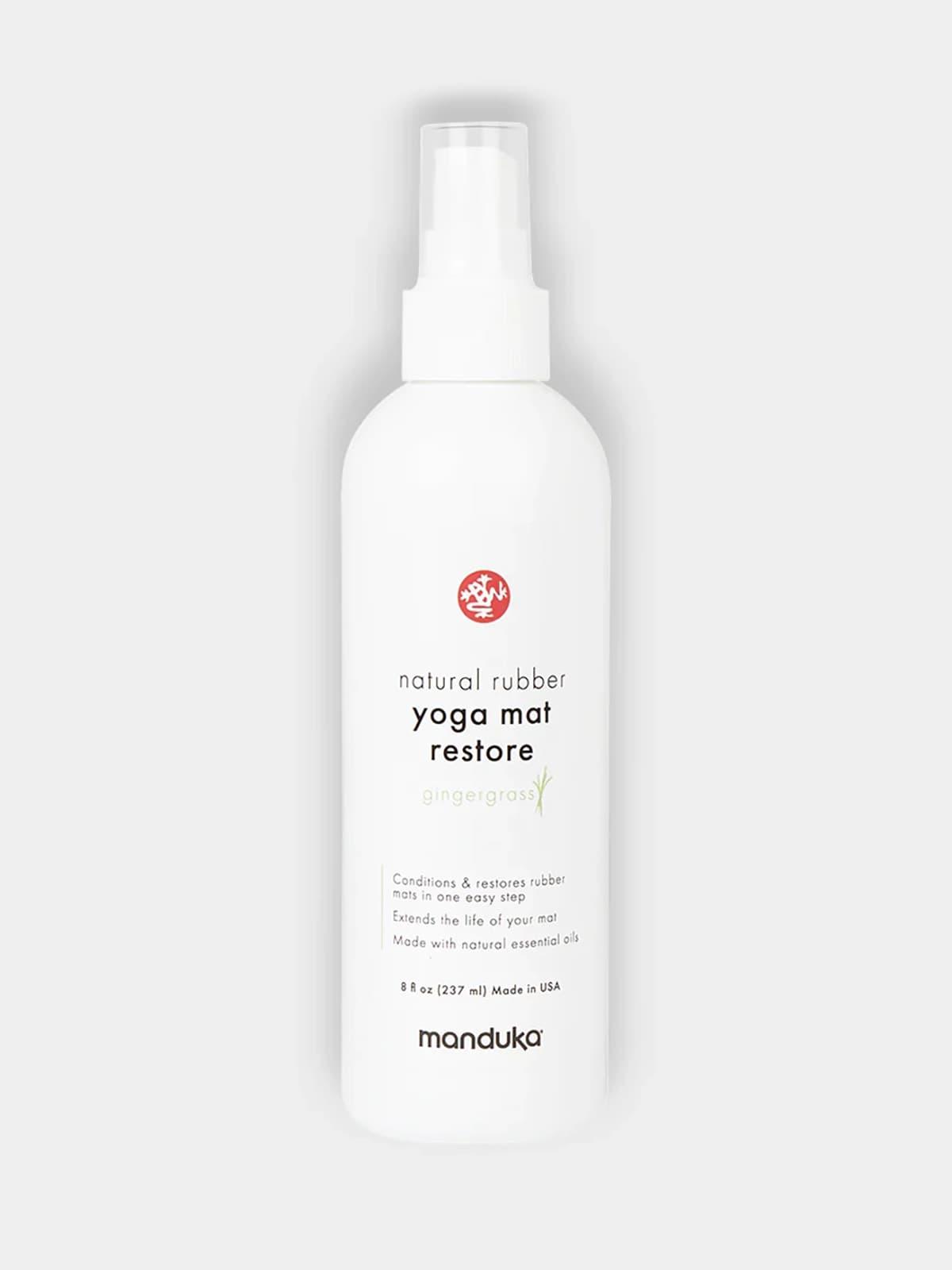 Manduka Natural Rubber Yoga Mat Restore Gingergrass Temizleme Solüsyonu eKO serisi matların performansını korumak için %100 doğal içeriklerle hazırlanmıştır. Tüm doğal kauçuk yoga matlarında kullanılabilir.Kauçuk yoga matların yüzeyinde renk değişimi ve solmaya yol açan oksitlenme sorununu tersine çevirerek mata eski parlaklığını geri vermek üzere formüle edilmiştir. Manduka yoga mat temizleme suyu aynı zamanda kauçuk matların kullanım süresini uzatır.En iyi sonuç için her ay düzenli kullanmalısın!